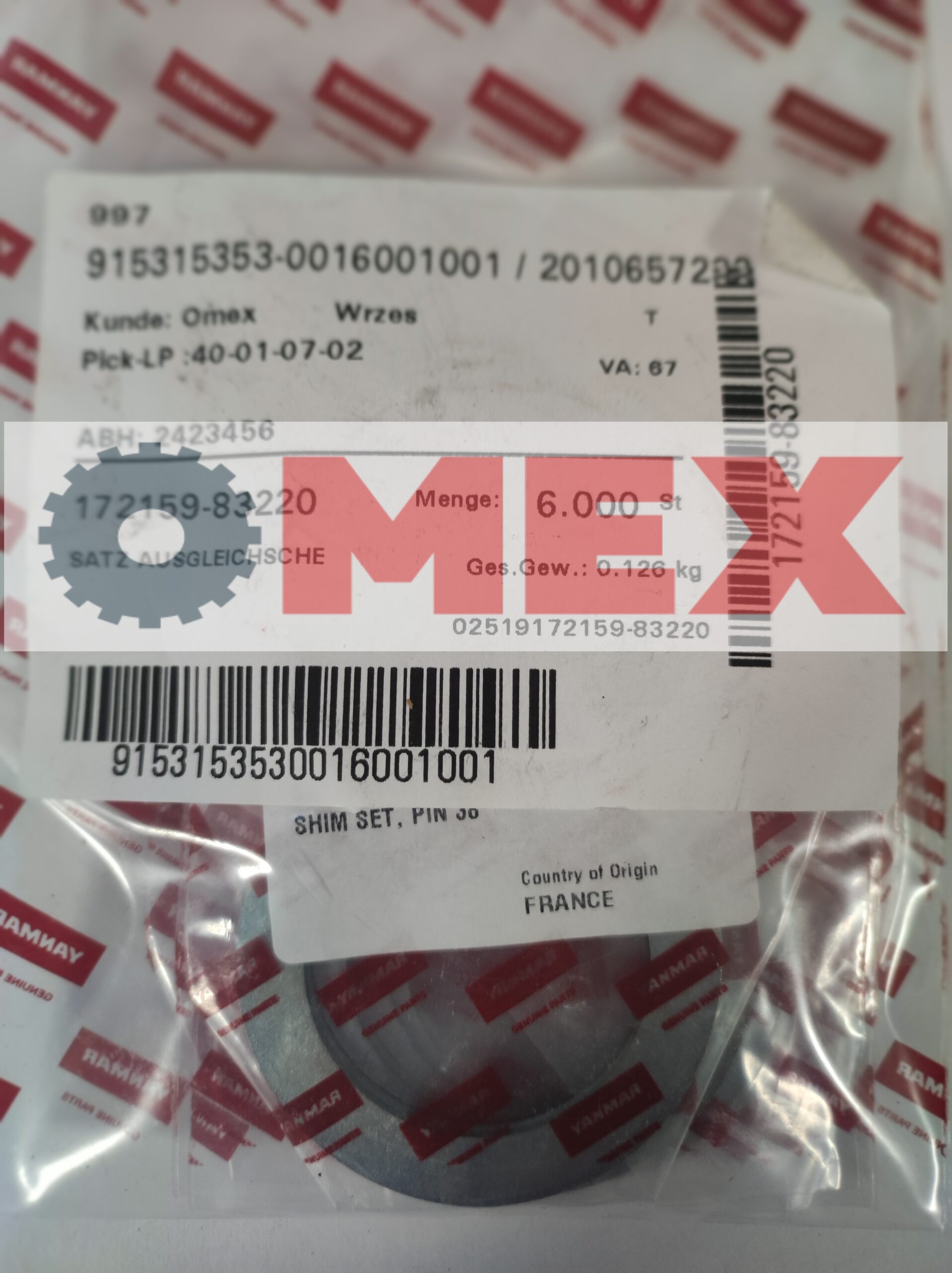 17215983220 Zestaw podkładek dystansowych Ø-38 mm Yanmar SV26